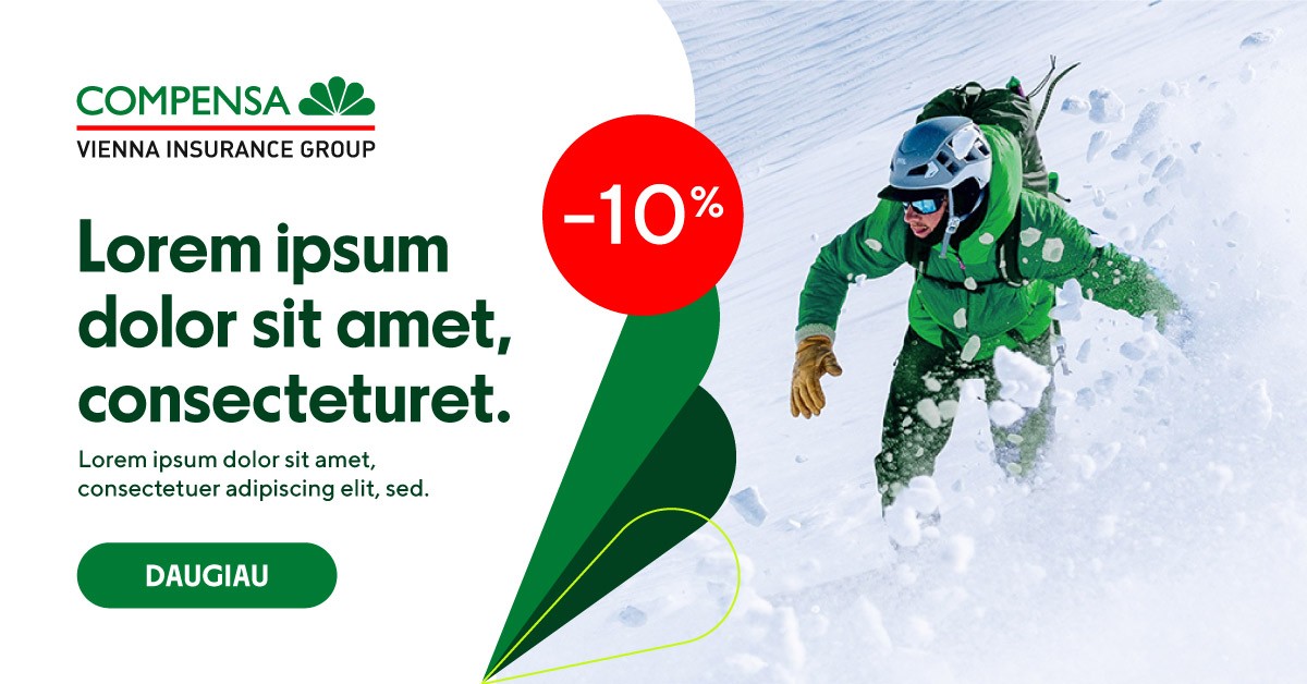 Nuotrauka komponuojama po grafiniu elementu ir pagrindine žinute.