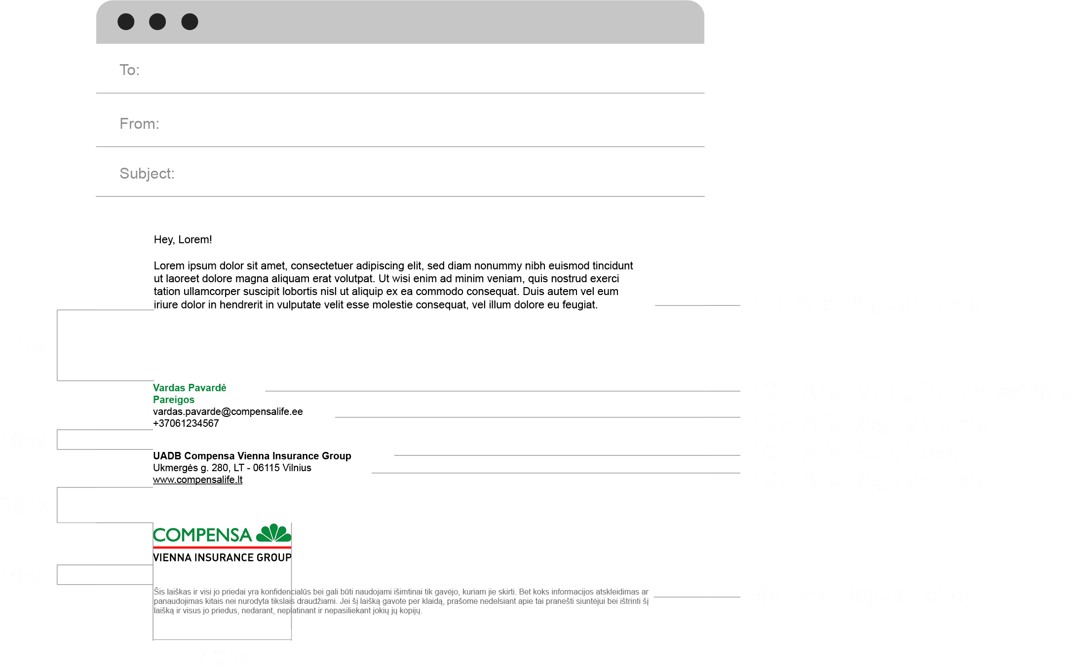 Šioje dalyje yra nurodytos rekomenduojamos šrifto proporcijos, kurių reikia laikytis „Compensa“ vizualiniame identitete.