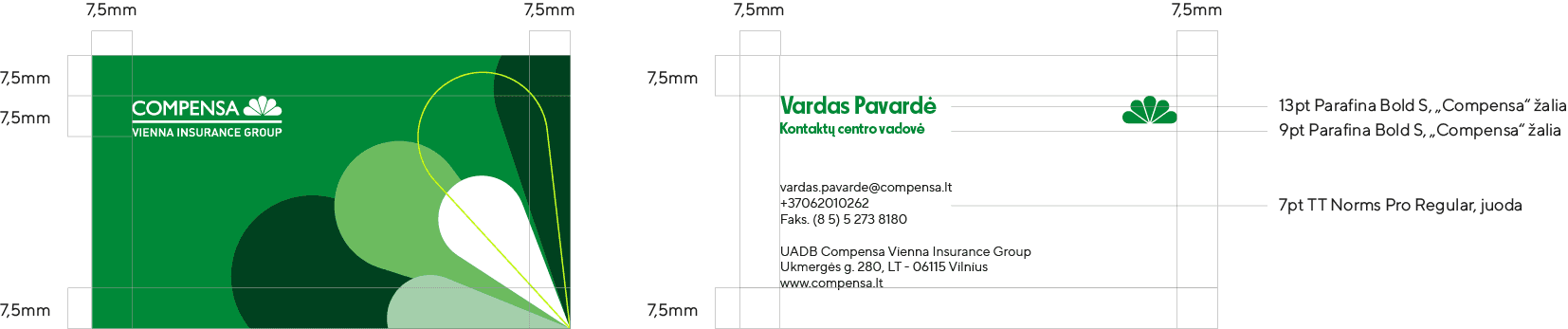 Vizitinės kortelės dydis – 88,9 x 50,8 mm.